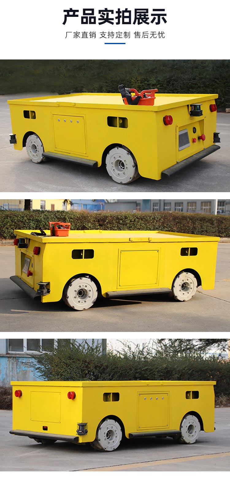 采用麦克纳姆轮构进行行走,是一种可二维平面任意漂移的准确移动的搬运 设备,通过单独控制轮子的转速、转向实现车的直行、横行、斜行、原地旋 转、各种连续曲线的移动。运动灵活、平稳,通过位置细微调整实现准确定位和轨迹控制。非常适合转运空间有限、作业通道狭窄的舰船环境,在提高舰船保障效率、增加舰船空间利用率以及降低人力成本方面具有明显的效果。