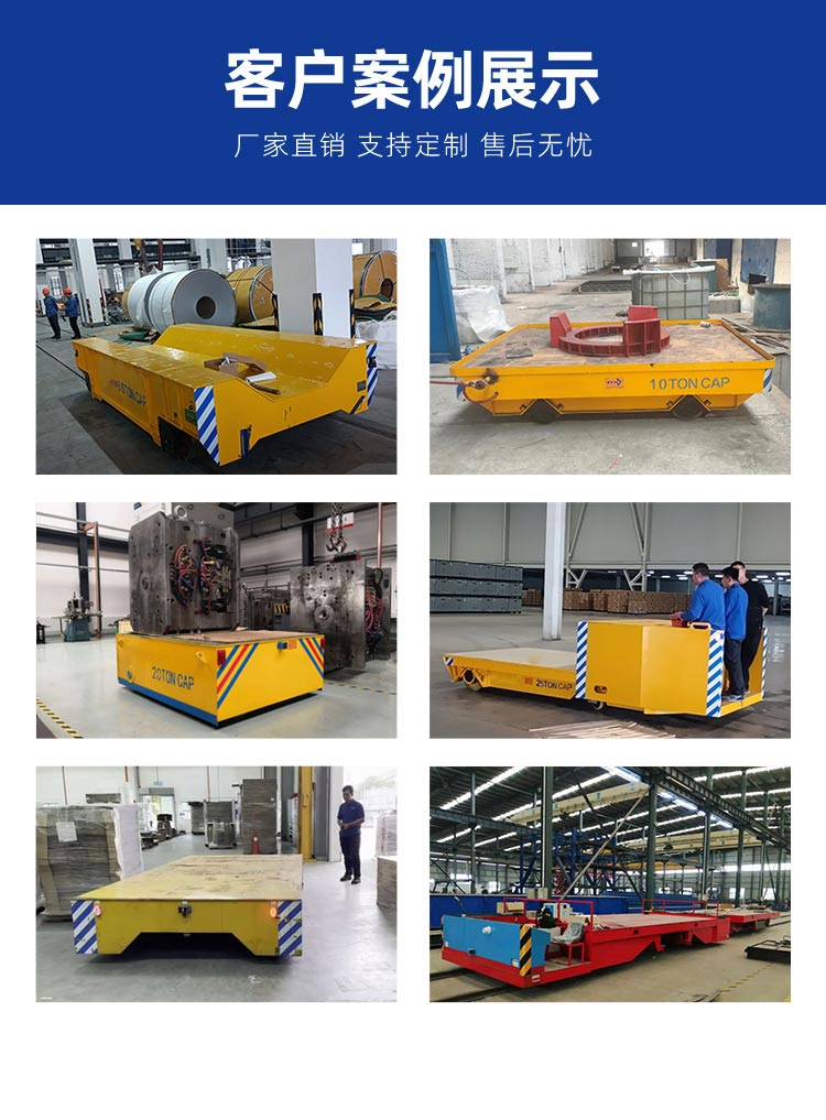 支架采用槽钢和箱型梁焊接,可载重15吨,三相电缆交流380伏供电,多组交流电机驱动,启动动力足,铸钢车轮使用寿命长,无线遥控转盘360度旋转,支持人工设置旋转角度和转速,电气功能齐全,声光报警时刻提醒周边人员注意**,断电自动刹车,具有过载、欠压过流等保护。该设备通常使用在仓储、车间、生产线的交叉轨道变换使用。